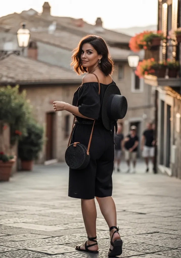 A classic black outfit is always a stylish and reliable choice for European summer. It creates a sleek and polished look that works for both day and night. It’s simple yet very effective. This outfit feels confident and timeless.