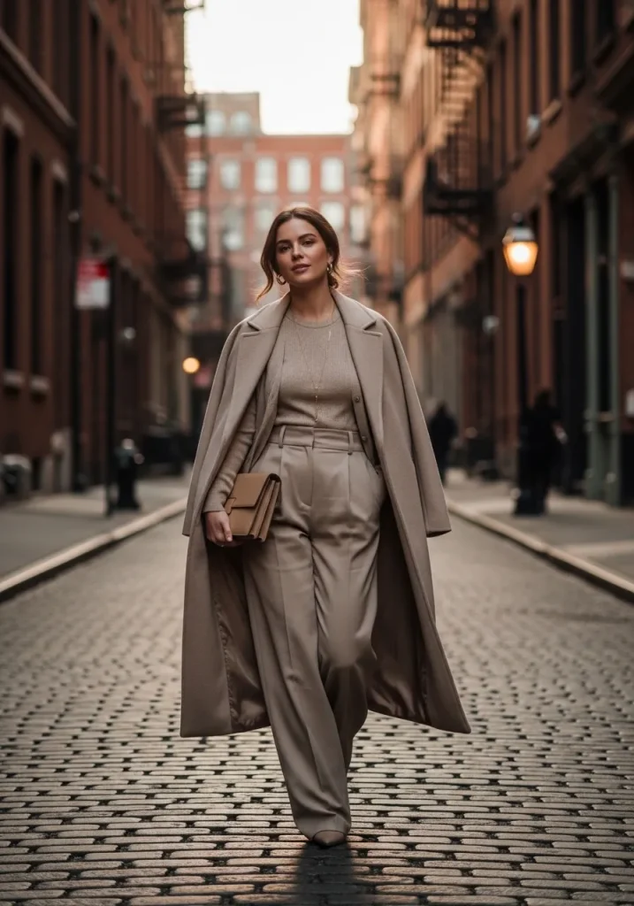 A monochrome beige outfit instantly gives off a clean, minimalist, and elevated vibe. Wearing one tone from head to toe elongates your silhouette and creates a cohesive look that feels very fashion-forward.