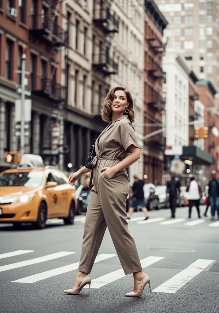 A neutral jumpsuit is sleek, simple, and incredibly stylish for spring. It creates a clean silhouette that feels modern and put-together.