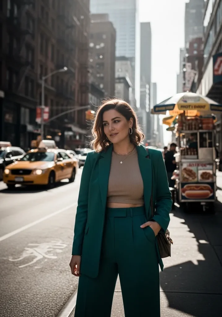 A tailored blazer styled with a mini skirt creates a perfect balance between polished and playful. This outfit captures that signature New York energy—structured, confident, and effortlessly stylish. It works beautifully for everything from brunch dates to casual work meetings in the city.