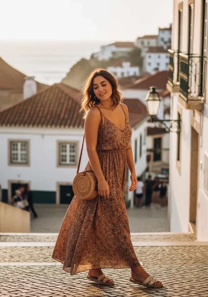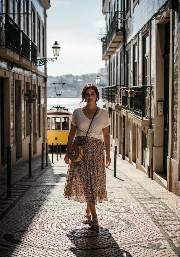 Opt for floral prints or soft colors that complement Portugal’s vibrant scenery. Pair with espadrilles to add a touch of European charm. Add delicate jewelry and a small handbag to complete the look. This outfit feels romantic and timeless.