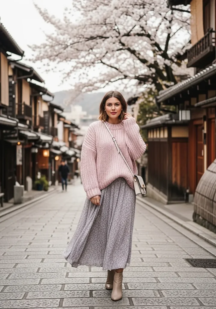 A basic t-shirt paired with a midi skirt creates a relaxed yet stylish outfit that’s perfect for exploring. The simplicity of the tee balances the elegance of the skirt. It’s comfortable enough for walking while still looking put-together. This outfit feels easy and versatile.
