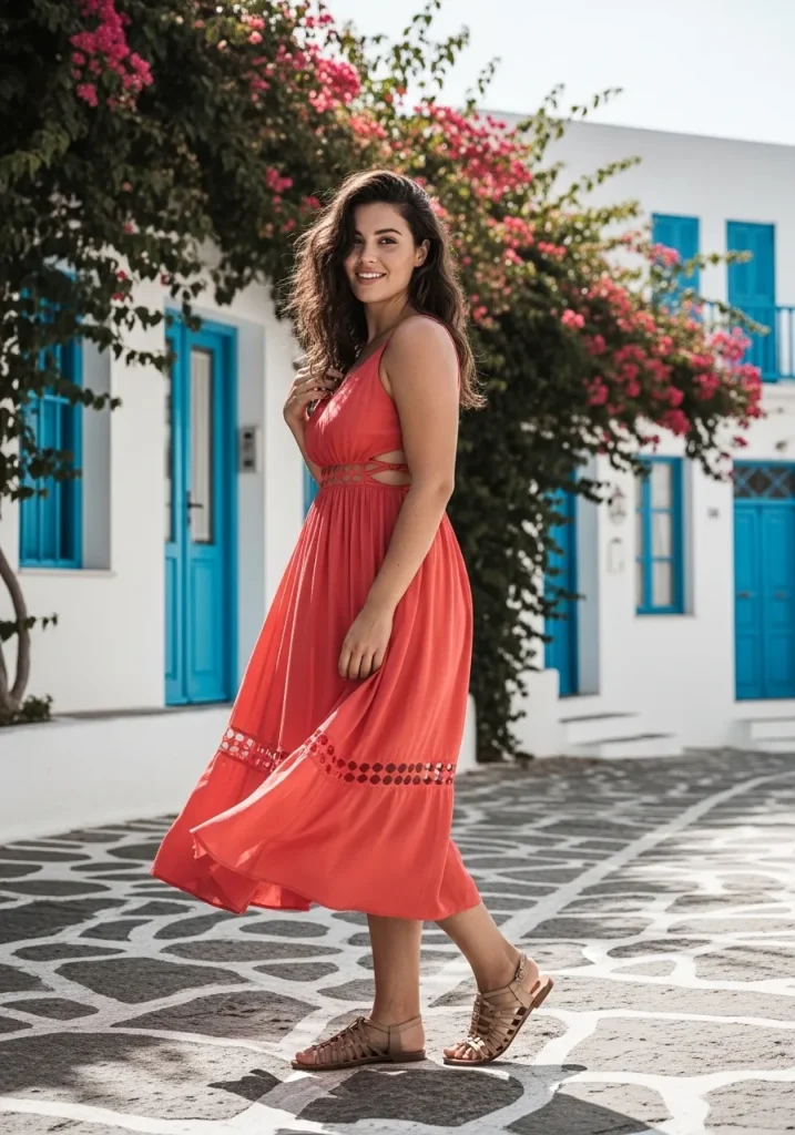 Choose lightweight fabrics to stay comfortable in the heat. Pair with strappy sandals or heels depending on the occasion. Add delicate jewelry and a small handbag for a polished finish. This outfit feels graceful and stylish.