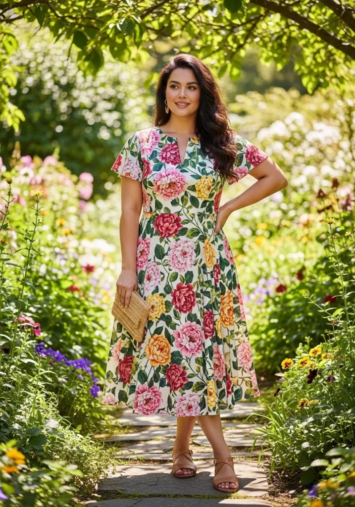 Choose smaller prints for a subtle look or bold florals for a statement. Pair with sandals and a woven bag for a complete outfit. Add minimal jewelry to balance the look. This dress feels lively and stylish.