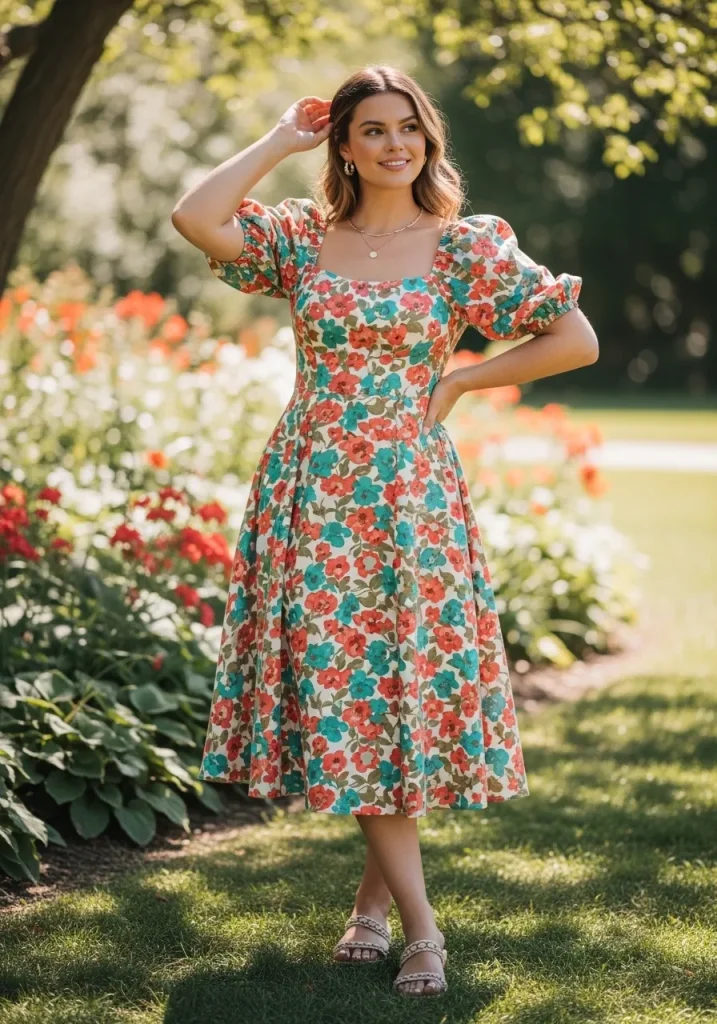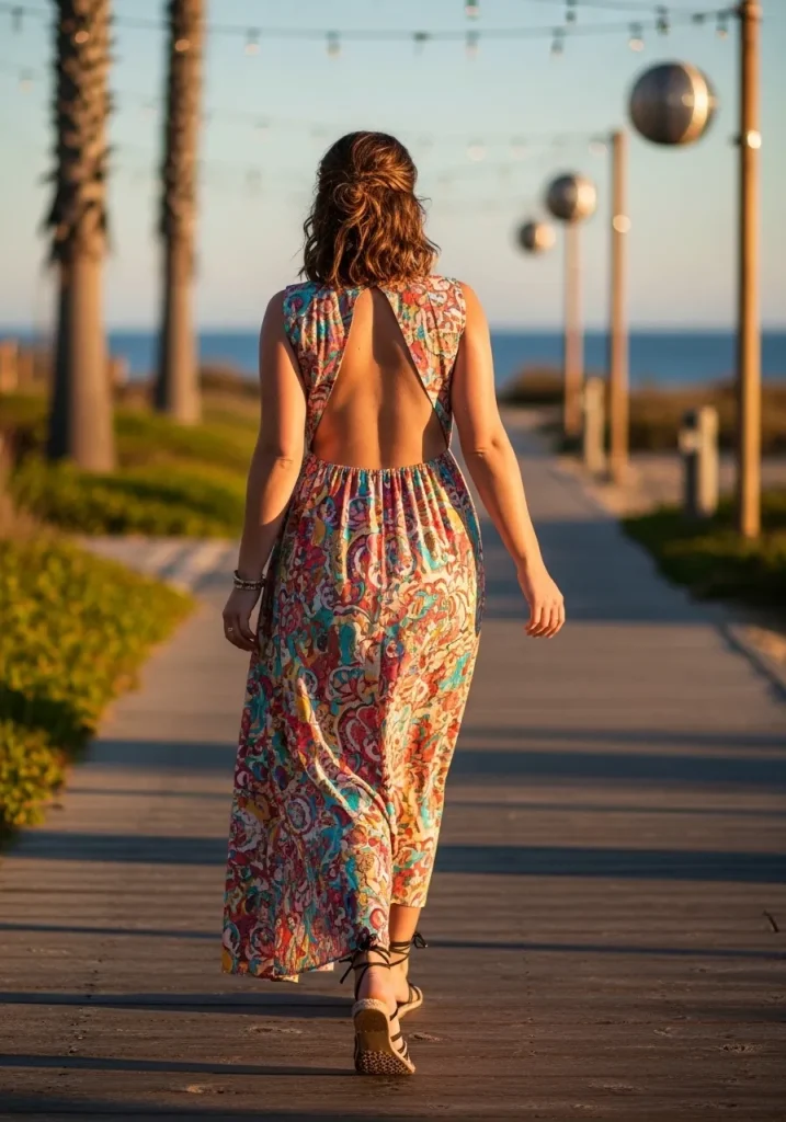 Choose lightweight fabrics to keep the look breathable and comfortable. Pair with sandals or flats for a relaxed vibe. Add a straw bag and sunglasses for a complete outfit. This dress feels lively and eye-catching.